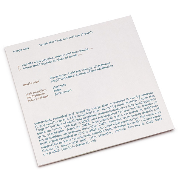 There are artists for whom sound is not merely a medium but a way of perceiving temporality of the universe. Finnish sound artist Marja Ahti is one of these rare practitioners. Her latest LP, Touch This Fragrant Surface of Earth (Fönstret, 2025), is not a music recording in the conventional sense, nor is it simply a work of electroacoustic composition. It is, instead, a meditation on transformation: an exercise in sound’s inexplicable capacity to alter, to decay, to become.