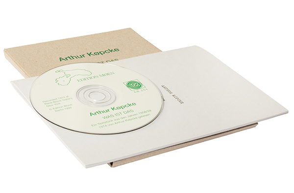 This rare edition documents Piece No. 2 as recorded in 1974 at René Block Gallery in New York. The CD and a 20-page booklet containing a reprint of the typewritten and edited text are packaged in a 21.5 cm x 15.5 cm x 1 cm cardboard box. Numbered edition of 500 copies.